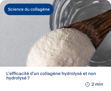 Les seules différences d’efficacité entre 2 compléments alimentaires à base de collagène dépendent donc de la qualité du processus d’hydrolyse, mais aussi du dosage proposé. Nous nous appuyons sur plus de 460 études pour développer nos produits et vous accompagner. La majorité de ces études ont été réalisées avec 10g de collagène hydrolysé au quotidien. C’est une dose sûre et permettant une efficacité maximale.